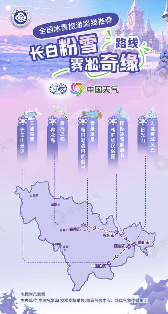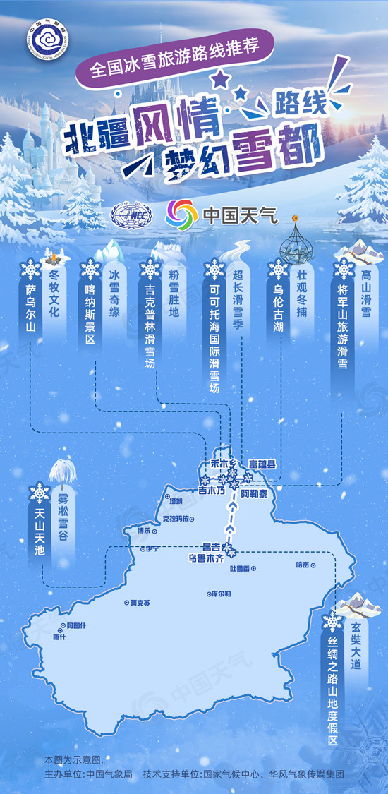 中国天气网 凛冬已至,各地独特的“冬季限定”景观纷纷登场。像北疆的梦幻雪域、吉林的雾凇奇景、四川的雪山冰川……为人们带来一场场视觉盛宴,同时也带火了冰雪旅游。中国气象局首次参加文化和旅游部2025年春节文旅消费月主场活动,国家气候中心联合中国天气网推介十大“冰雪旅游路线”,来看看最适合观赏冬季景观的路线吧。